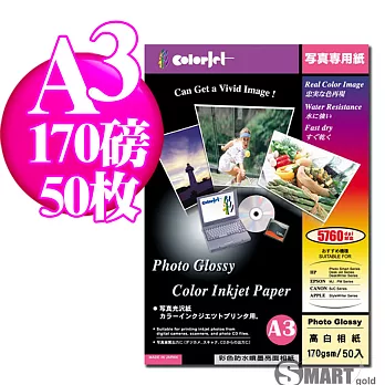 日本進口 color Jet 防水亮面噴墨相片紙 A3 170磅 50張